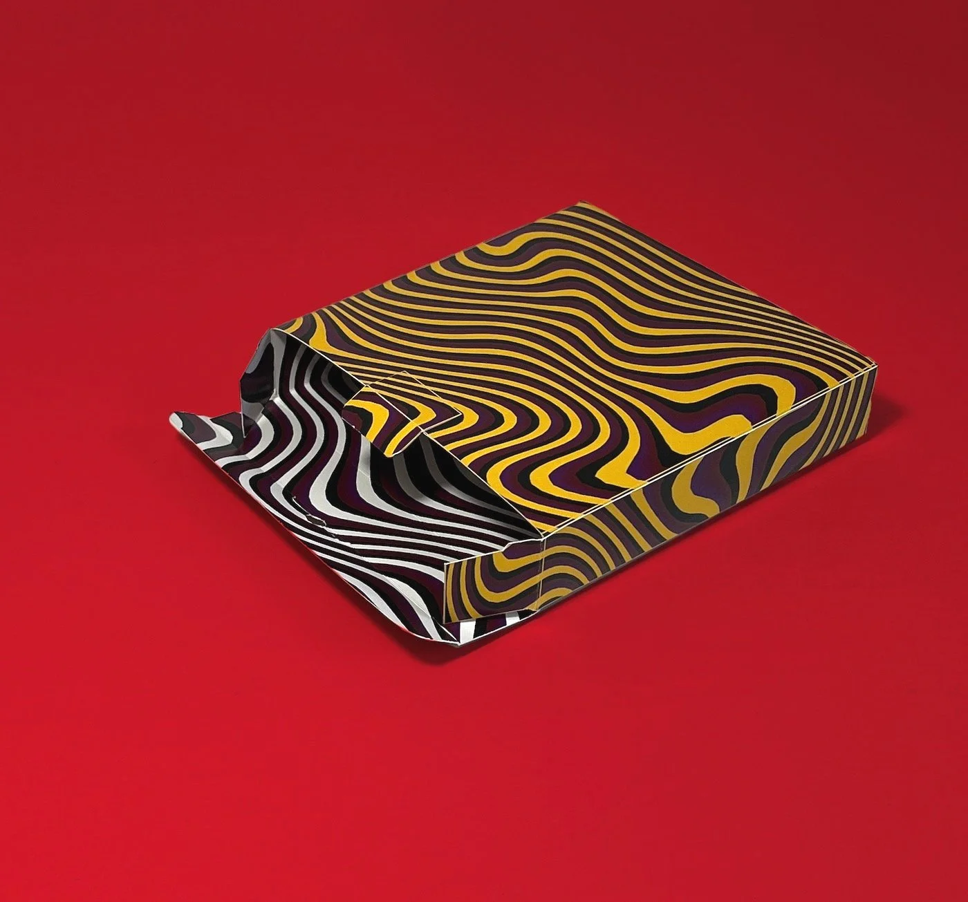 The outside is covered in a mesmerizing swirly pattern to appeal to the audience. The punch-out speech bubbles can be passed to your date or the stranger sitting next to you during the movie as an alternative to disruptive talking.